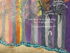 Those of us who choose to pursue watercolor are forever students. The medium is the Master. That’s because watercolors move and flow all over the paper. Most of the time, the paint goes exactly where it wants to go. The artist cannot usually win that battle of corralling that beautiful, vivid, flowing paint, so I try not to hem it in, but to accept its flowing as a gift. And, of course, try to guide the flowing paint into a bit of order that resembles a forest, a tree, a woman, a giraffe . . . whatever I am trying to capture.